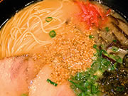 福岡博多らーめん「てんてん」日々の精進の中、厳選素材から生れる九州ならではの豚骨スープに醤油をブレンドした特製のスープは、シンプルな中にも後に引く味わいです。 「ラーメンのスープのしずくを1滴(てん)残さず飲んで頂きたい・・・」 店名の由来になったほどのこだわりのある美味スープと味のあるコシの強いストレート細麺。店長の人柄が一杯のラーメンから伺えるような真に美味しい豚骨醤油ラーメンです。 【 詳しくはこちら 】